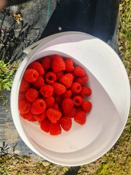 ラズベリー、ブルーベリーの収穫